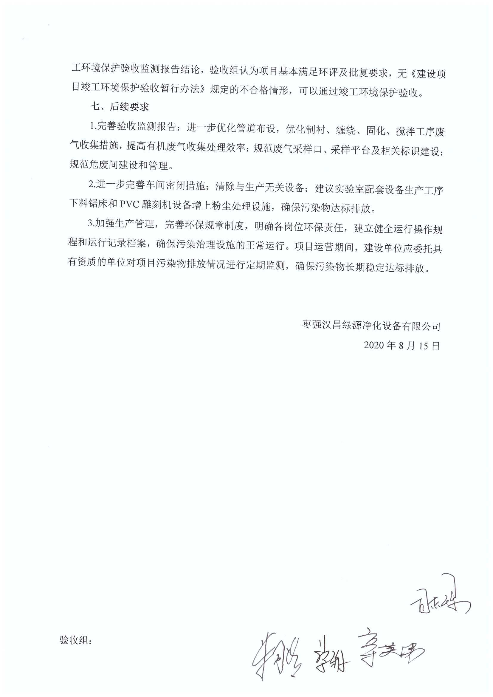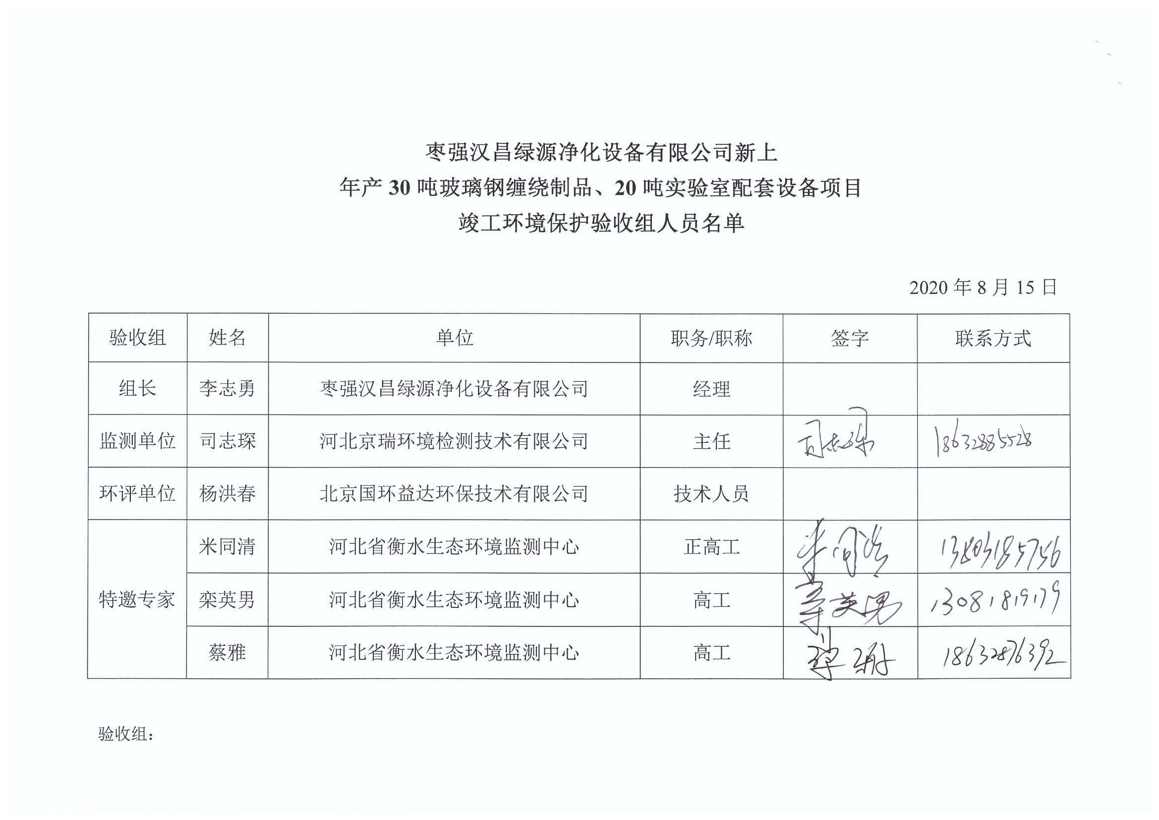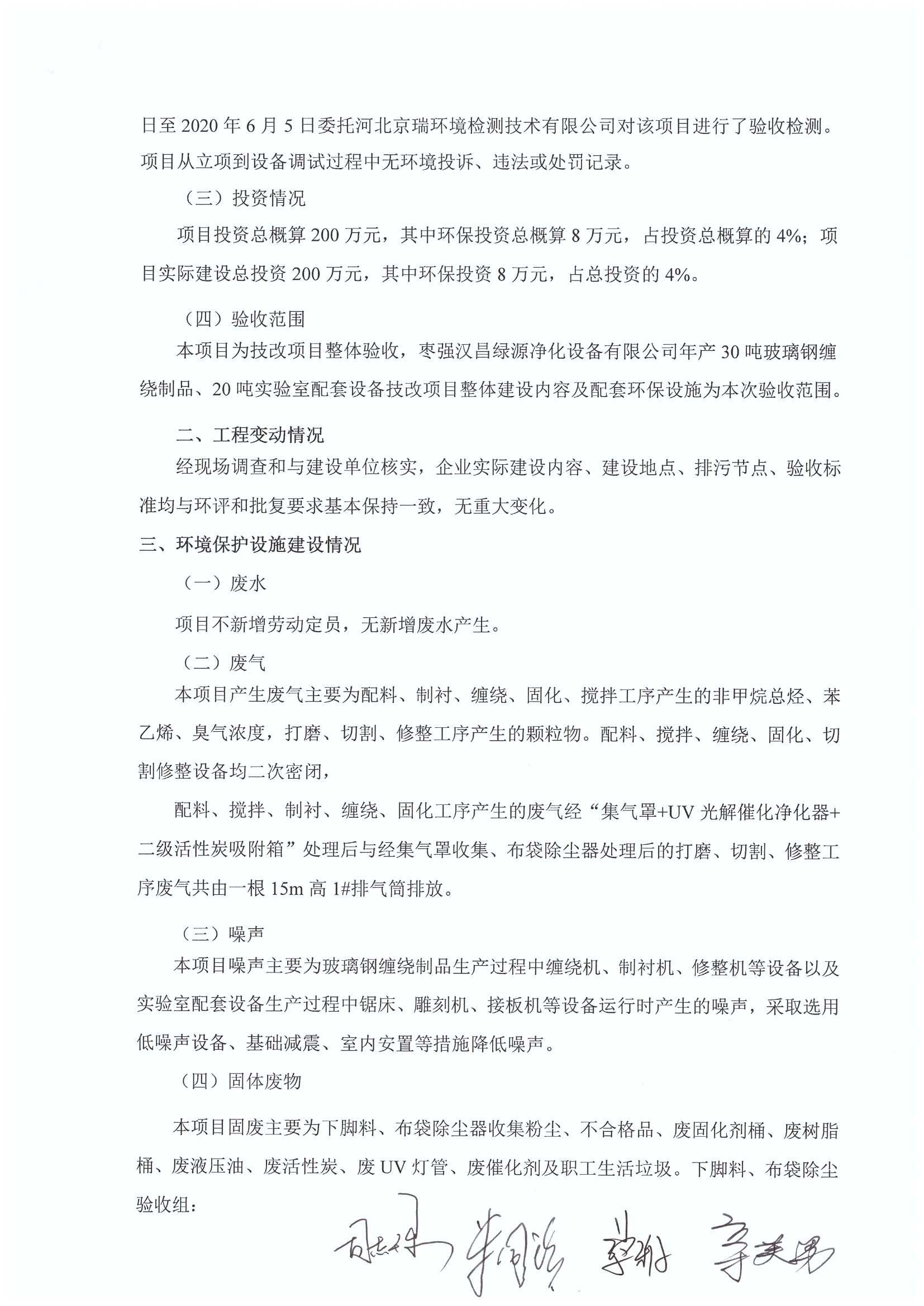棗強(qiáng)漢昌綠源凈化設(shè)備有限公司年產(chǎn)30噸玻璃鋼纏繞制品、20噸實(shí)驗(yàn)室配套設(shè)備技改項(xiàng)目竣工環(huán)境保護(hù)驗(yàn)收意見